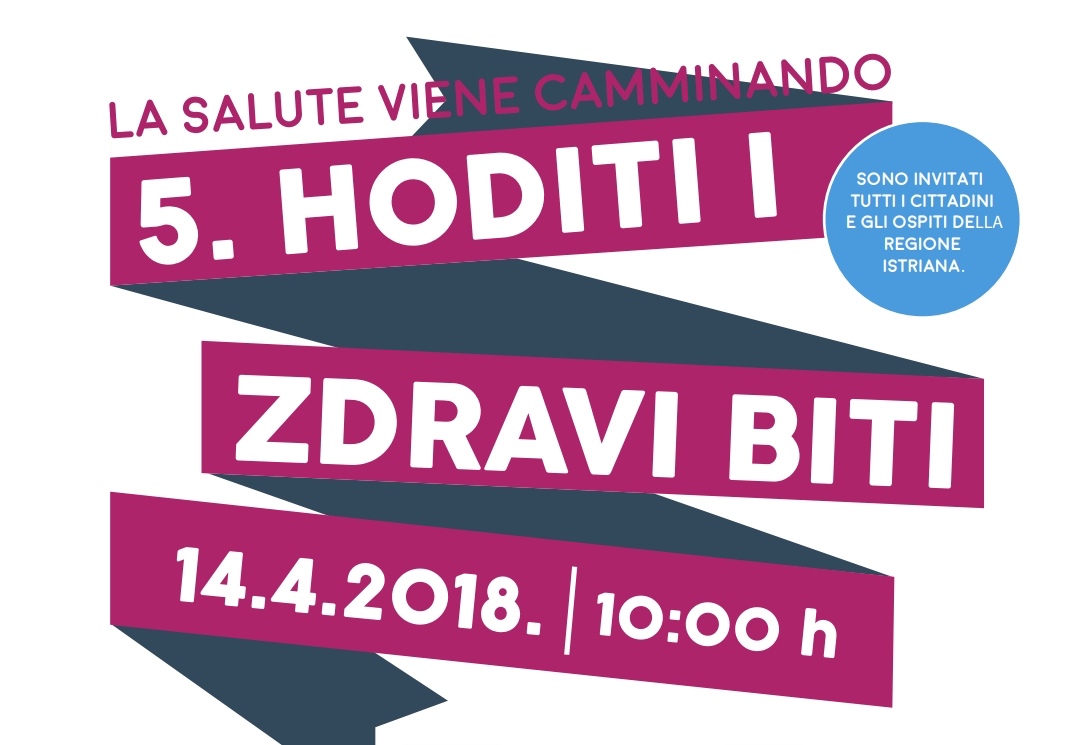 Pozivamo građane Poreča i Poreštine da nam se pridruže u aktivnosti pješačenja „Hoditi i zdravi biti – La salute viene camminando“ u subotu, dana 14.04.2018., na prekrasnoj porečkoj šetnici od Općinskog suda do Plave i Zelene lagune.Toga dana će istovremeno pješačiti građani u gradovima Istre pod motom „Živjeti zdravo“, a pod pokroviteljstvom Zavoda za javno zdravstvo Istarske županije (ZZJZ IŽ)! Aktivnost hodanja, pješačenje primjereno je gotovo svim osobama i dokazano je jedna od najboljih zaštita jer čuva naše tjelesno i mentalno zdravlje!