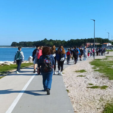Uz lijepo vrijeme, u organizaciji stručnih službi škola – psihologinja i pedagoginja – te u pratnji svojih profesora, među kojima i kineziologa, srednjoškolci te osnovnoškolci su ispunili dvije poznate porečke šetnice: od Općinskog suda prema Plavoj i Zelenoj laguni te šetnicu prema Materadi i parku na plaži Sv. Martin.