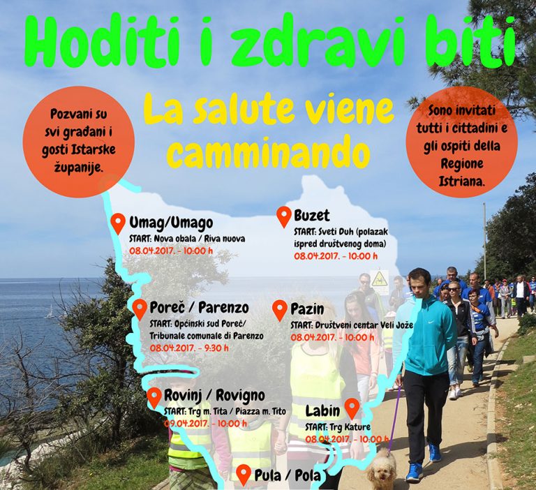 Pozivamo građane Poreča i Poreštine da nam se pridruže u aktivnosti pješačenja „Hoditi i zdravi biti – La salute viene camminando“ u subotu, dana 08.04.2017.,…